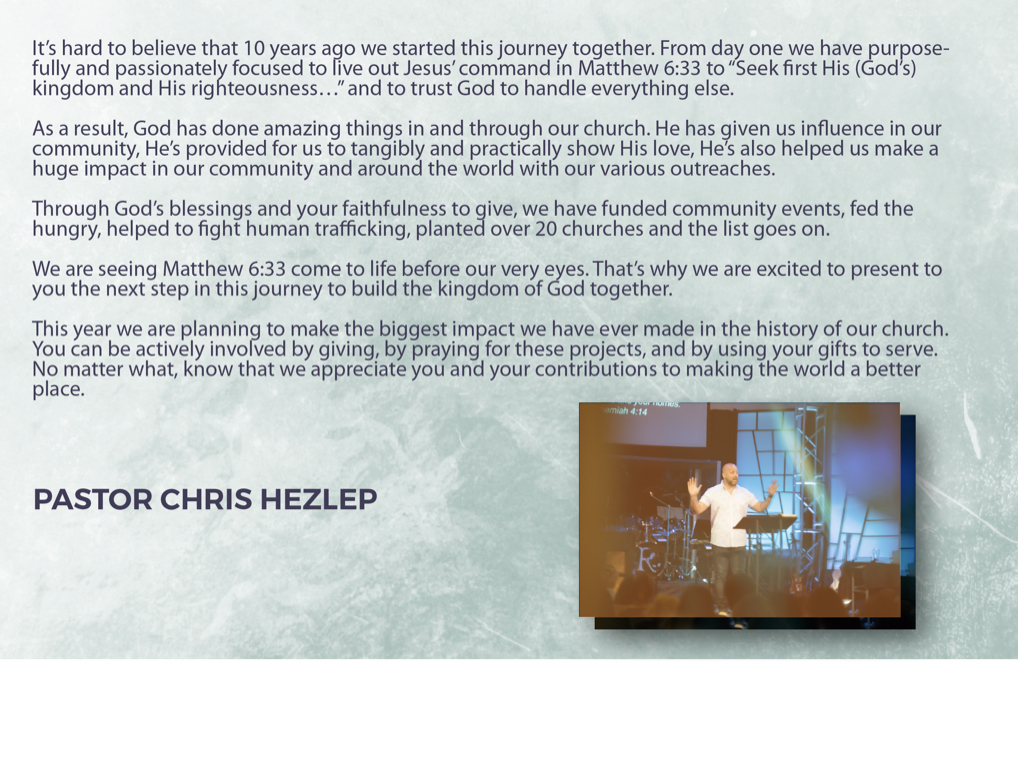 Our goal is to raise $500,000 to support 10 different missions projects locally, regionally, and around the world. You can be a part of this world-changing initiative! Together, we can impact the world for Christ.